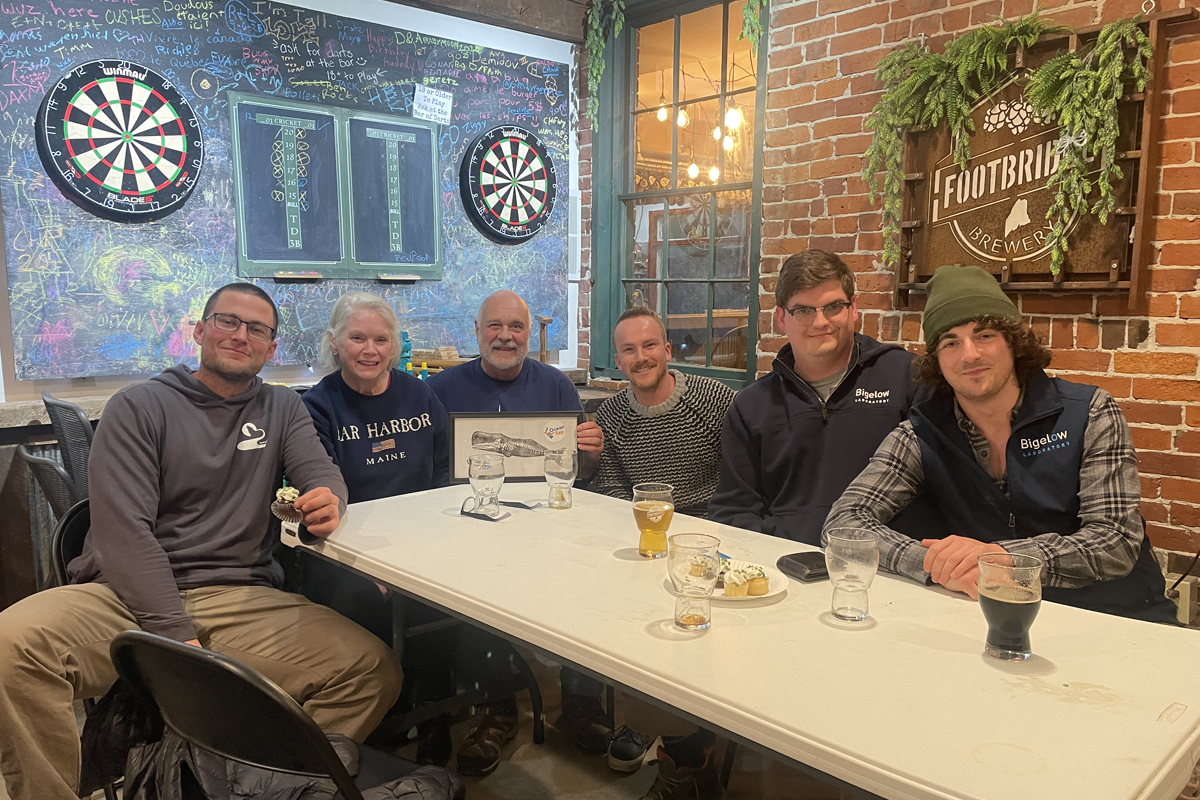 It has since grown into a staple community event. The bar is packed each month, and the pool of speakers has expanded to represent the array of research institutions, nonprofits, and agencies in the area. Talks this year featured a university professor, an award-winning writer, scientists from across the Department of Marine Resources, and a number of Bigelow Laboratory researchers discussing everything from research expeditions to forever chemicals.
